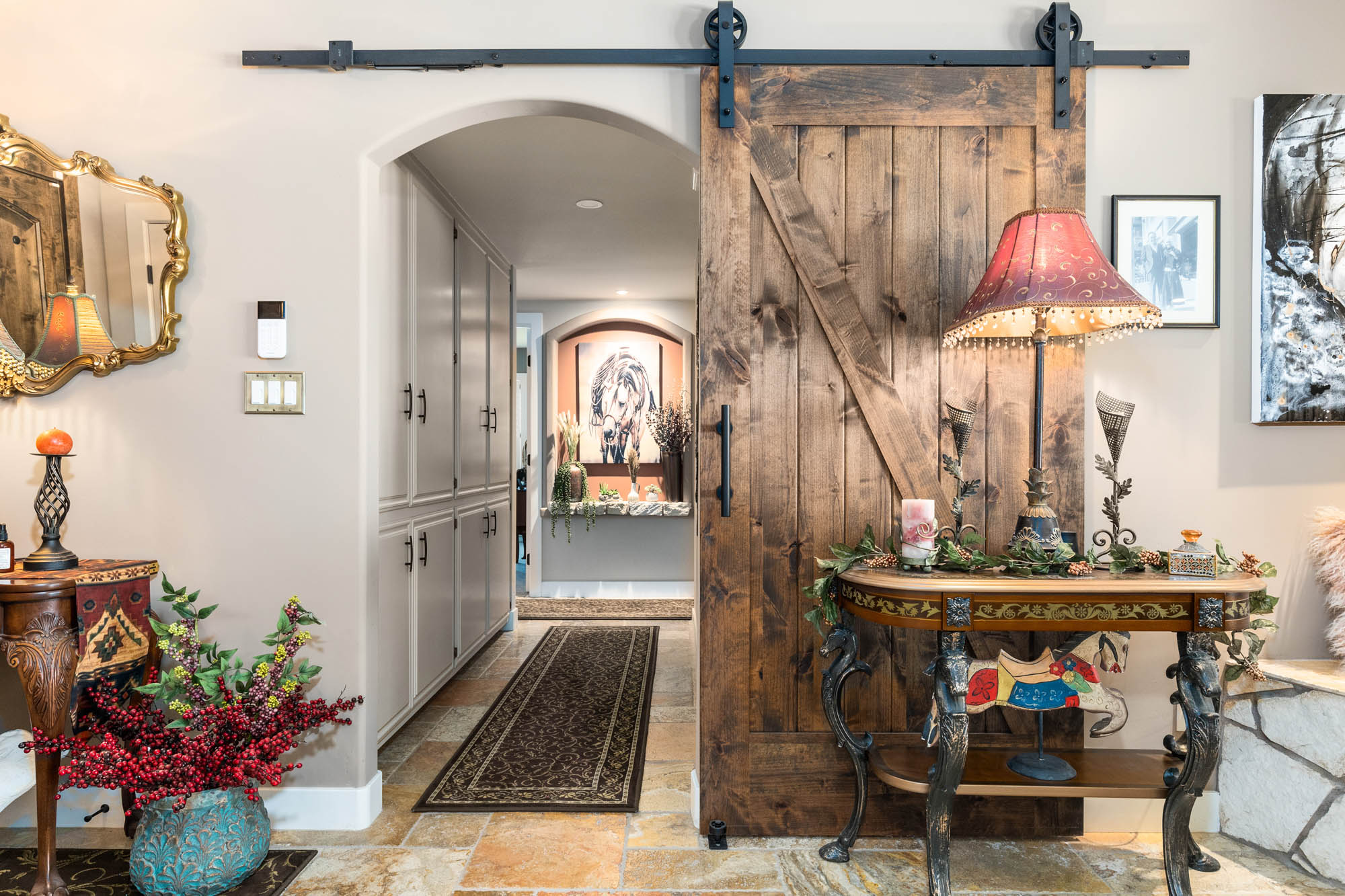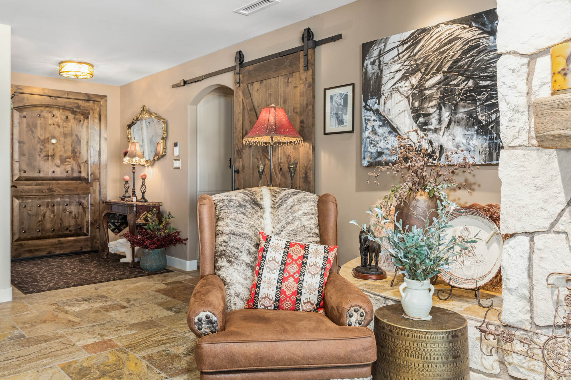 Step into this one-of-a-kind rustic sanctuary where the allure of the countryside meets the comfort of modern living. As you enter, you’re greeted by the warmth of natural materials and the charm of rustic accents. This remodeled country home is a testament to bespoke craftsmanship and thoughtful design, where every detail has been carefully curated to create a space that is as beautiful as it is inviting.